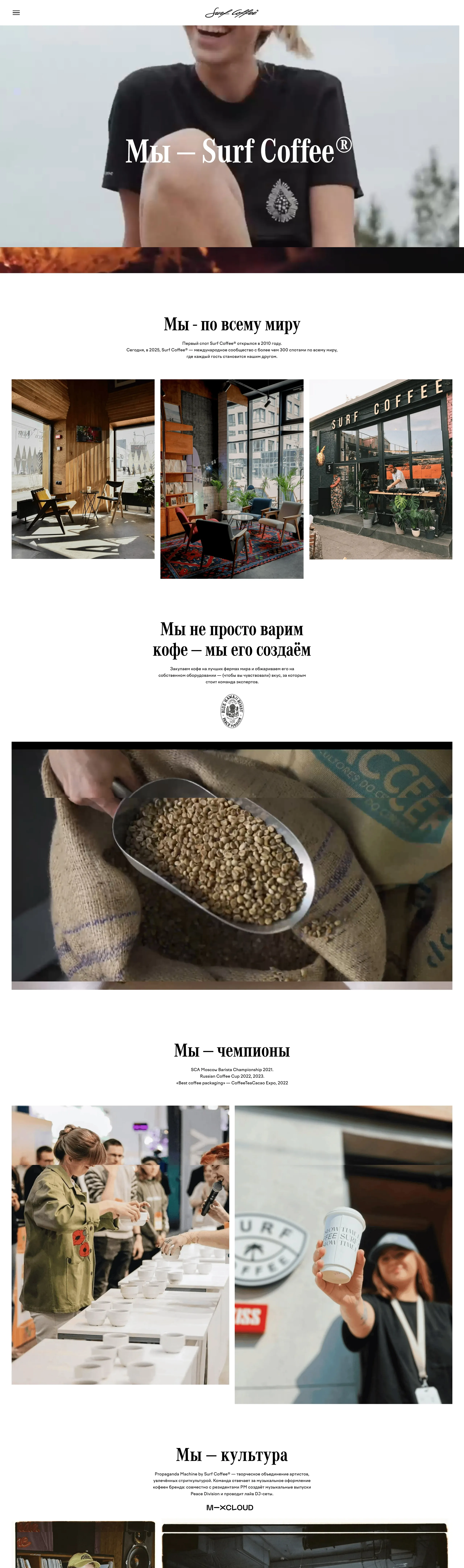Компания открывает кофейни по всему миру, создавая атмосферу дружбы и удовольствия от кофе. Surf Coffee активно занимается лицензированием, обучением и проектами, связанными с культурой и искусством.