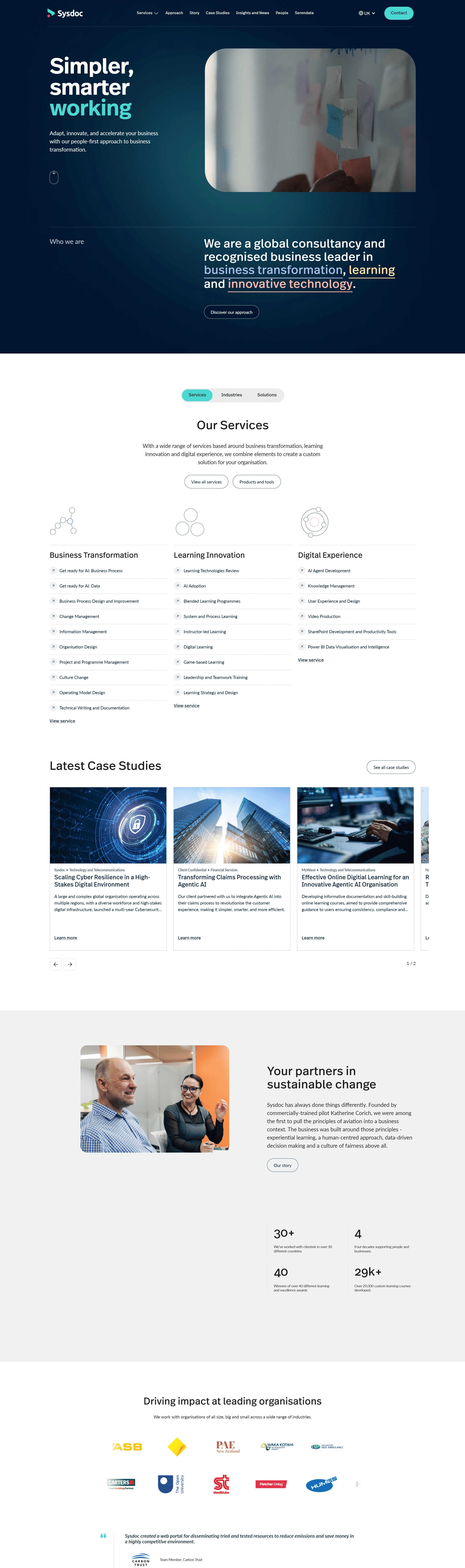 Sysdoc is a global consultancy focused on business transformation, innovation, and growth, offering simpler and smarter ways to work within organizations. They provide a range of services that include business transformation, learning innovation, and digital experience.