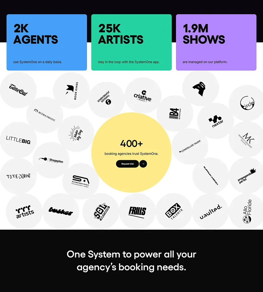 Это облачная платформа для агентств по бронированию, которая упрощает весь процесс - от запроса до выступления.