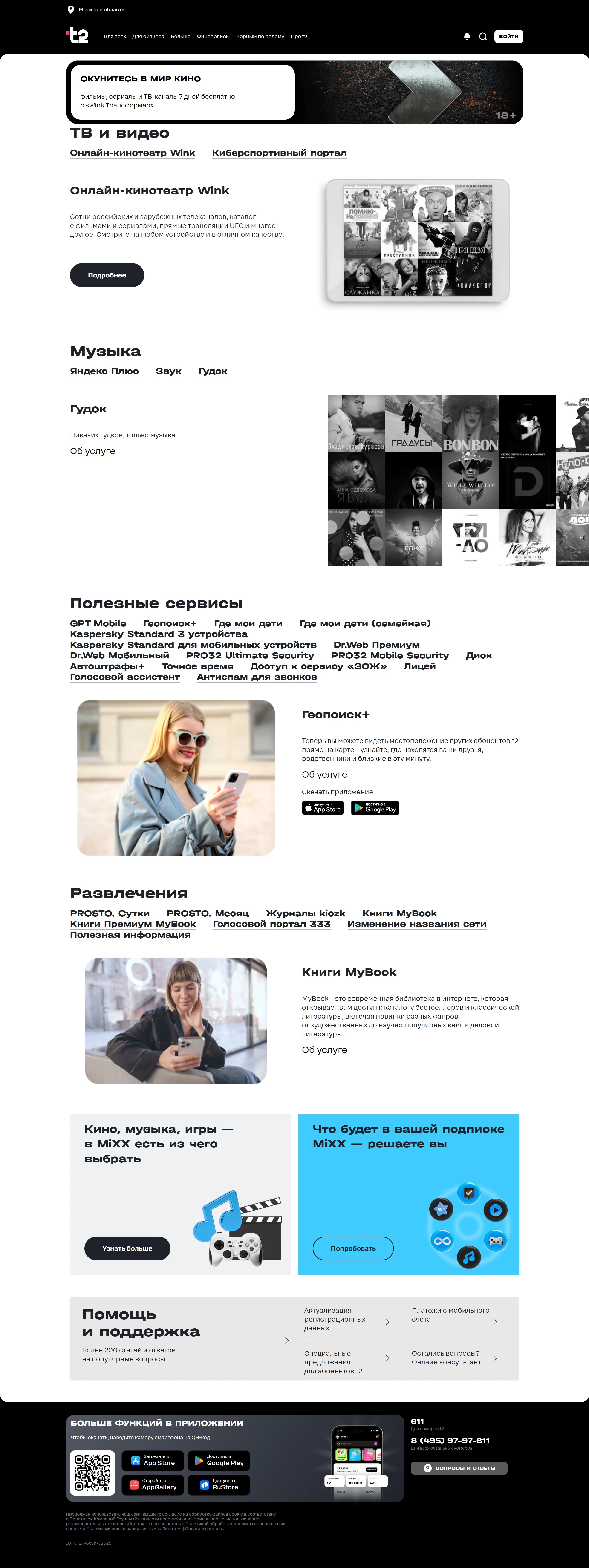 Главная t2, тематика — Телекоммуникации, цвета — Белый, Черный, Серый, стиль — Корпоративный, типографика — Без засечек