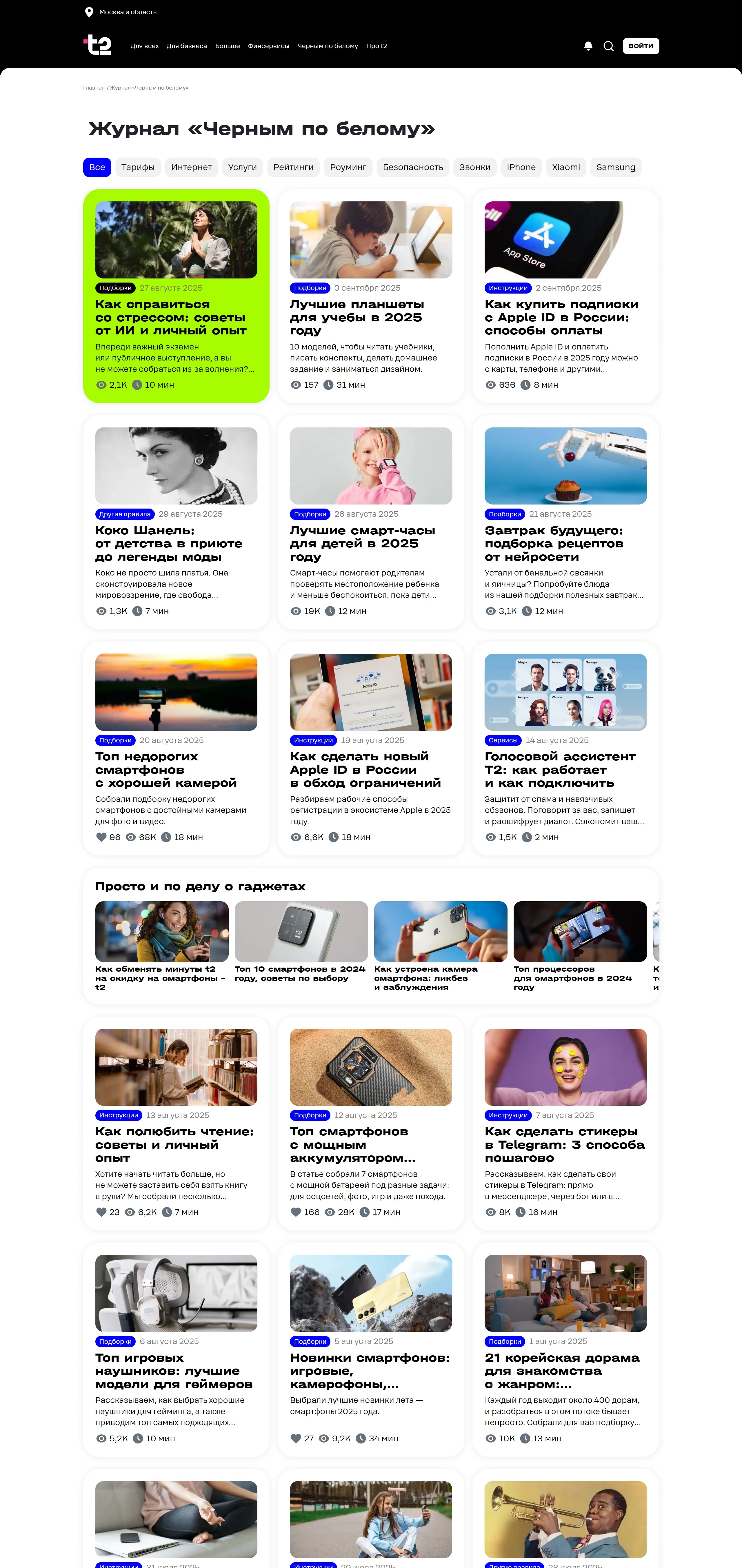 Блог t2, тематика — Медиа, цвета — Белый, Серый, стиль — Корпоративный, типографика — Без засечек