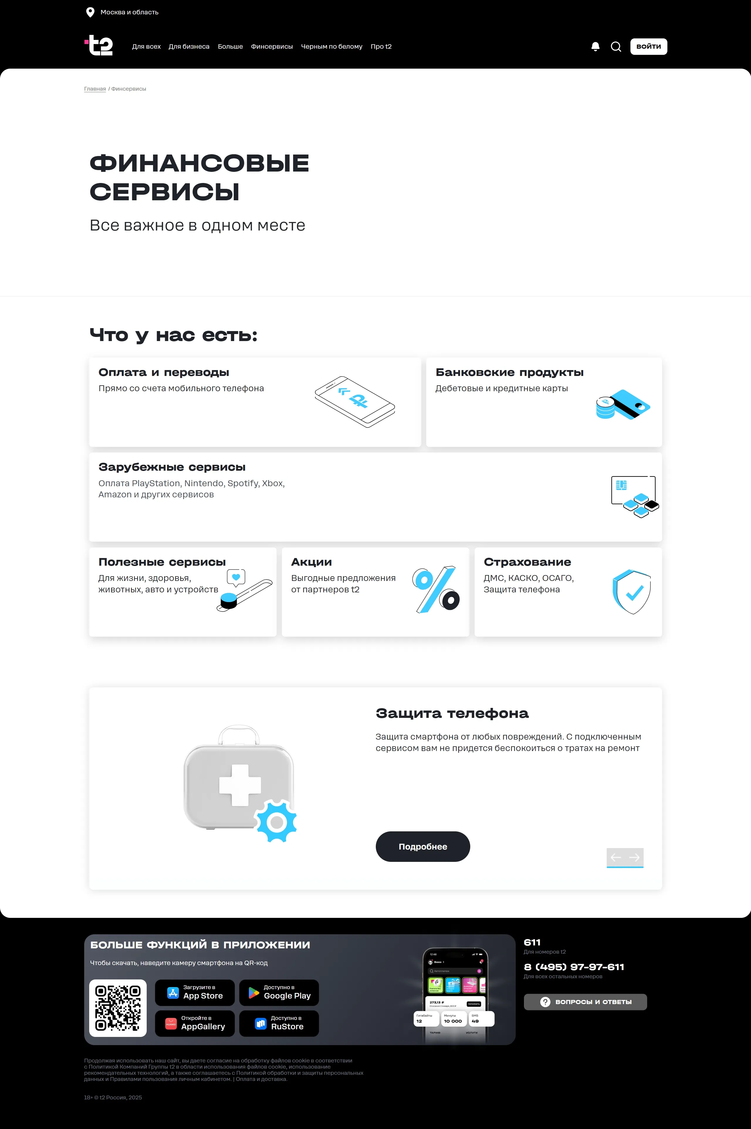 Услуги t2, тематика — Финансы, Телекоммуникации, цвета — Белый, Черный, стиль — Минимализм, типографика — Без засечек