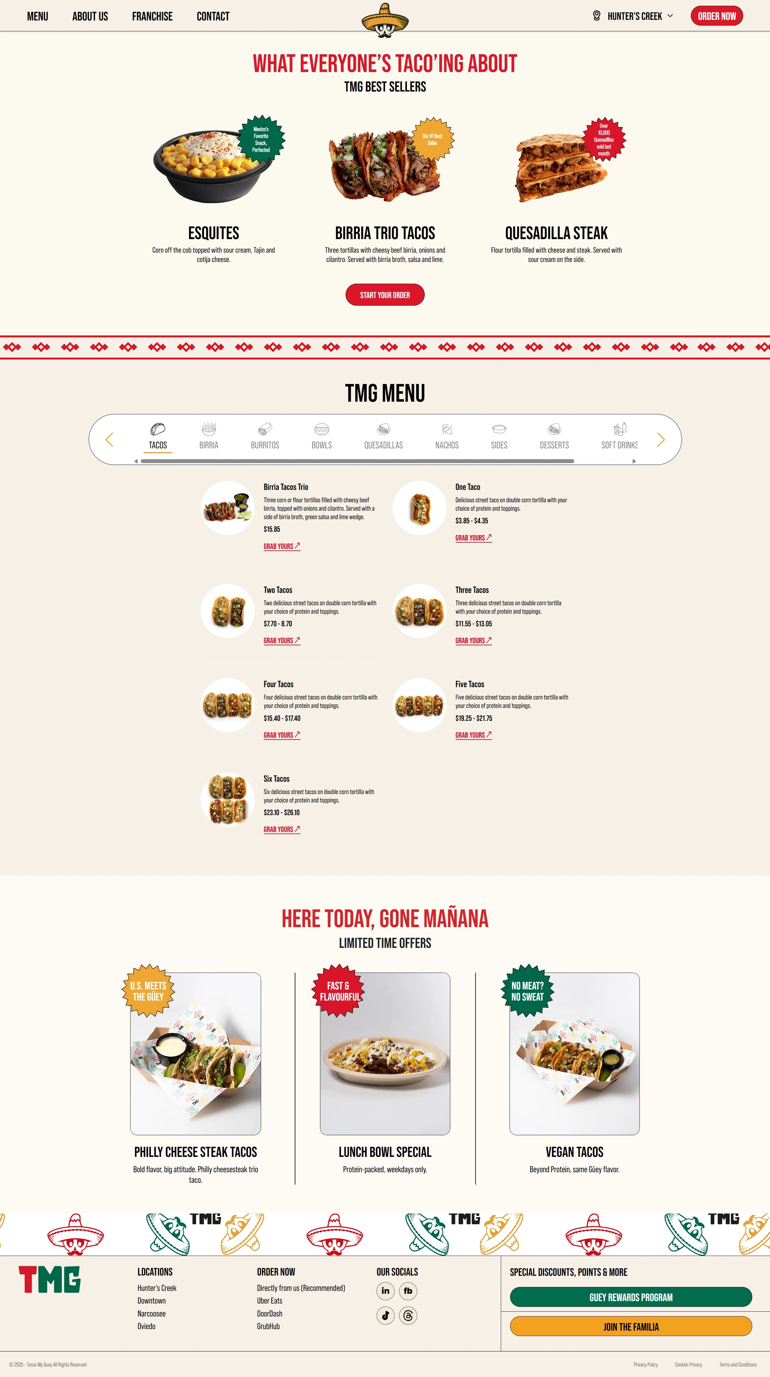 This company offers authentic Mexican street food, featuring a variety of tacos, burritos, and birria in Orlando. Customers can order online or visit their location for a flavorful experience.