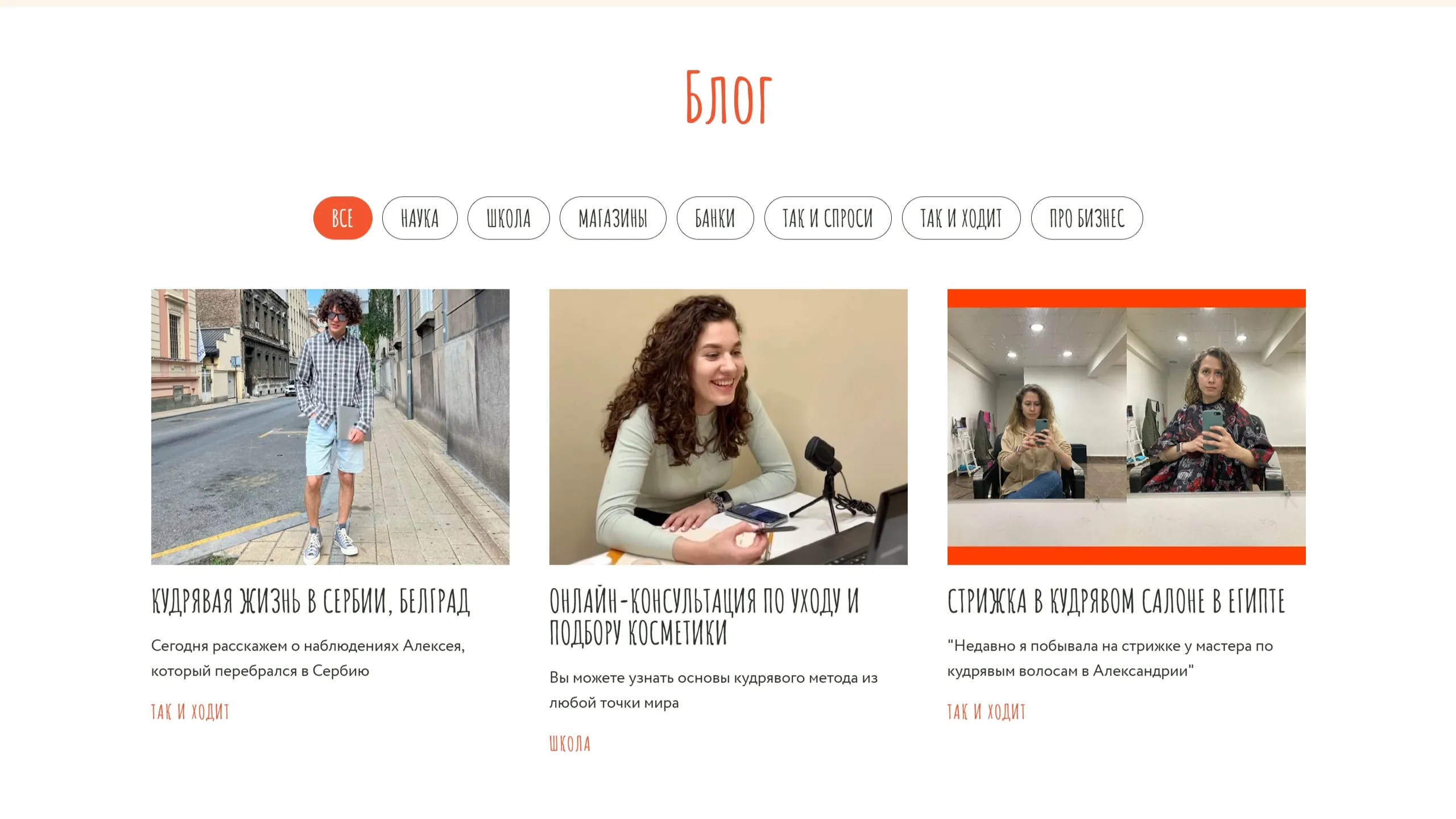 Сеть салонов, специализирующаяся на уходе за кудрявыми и волнистыми волосами, предлагает услуги стрижки, косметику и обучение техникам укладки волос.
