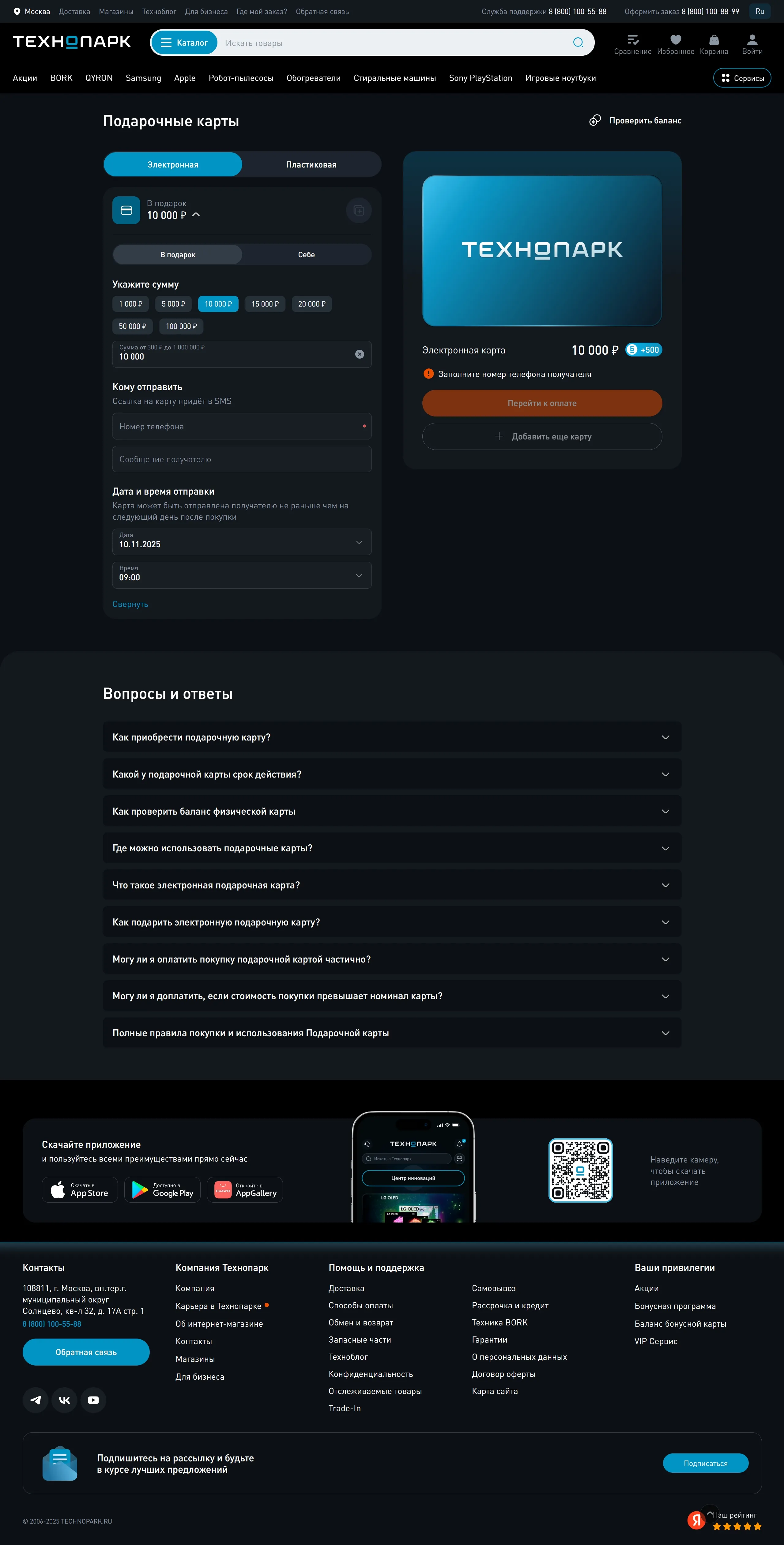Секция «Контакты» с сайта https://www.technopark.ru/, тематика — Интернет-магазин, цвета — Черный, стиль — Корпоративный, типографика — Без засечек