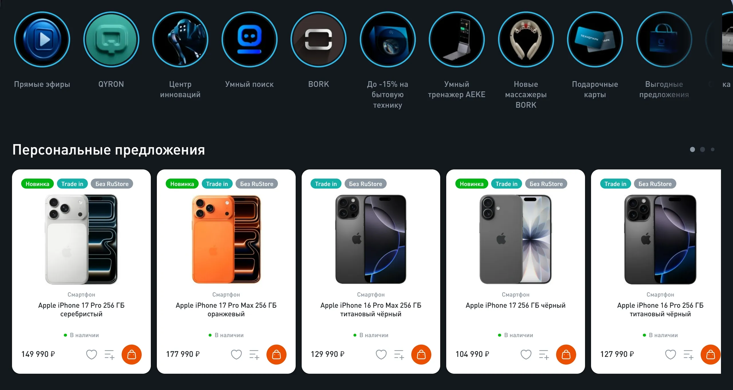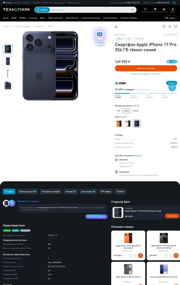 Секция «Товары» с сайта https://www.technopark.ru/, тематика — Интернет-магазин, цвета — Белый, Черный, Серый, стиль — Минимализм, типографика — Без засечек