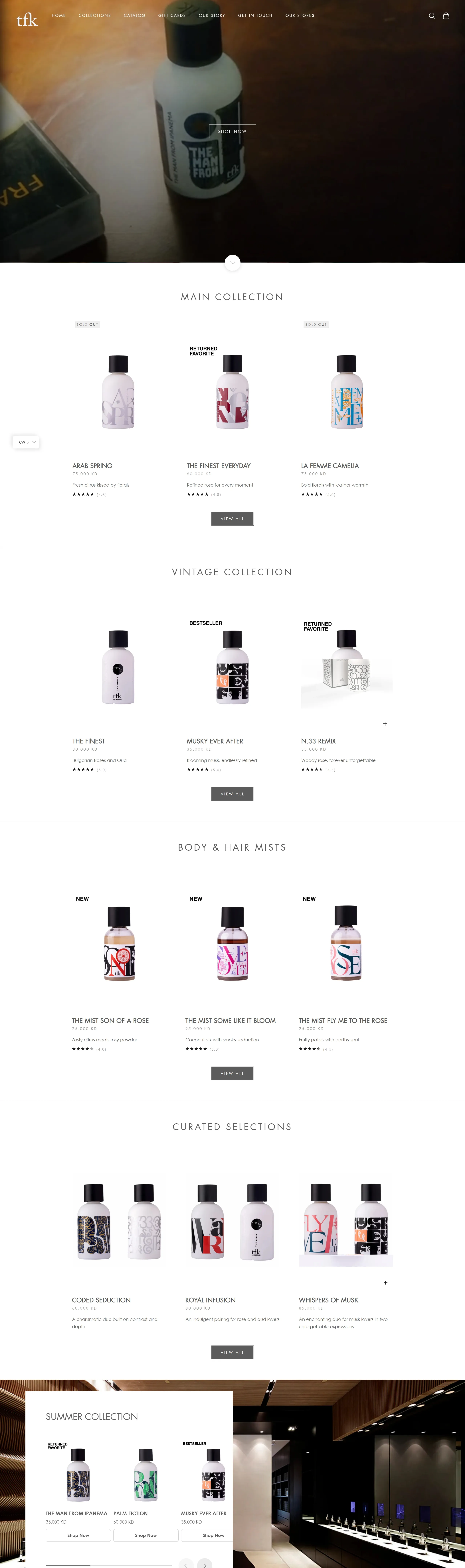 TFK предлагает широкий выбор ароматов, включая основные и винтажные коллекции, а также подарочные карты. Клиенты могут безопасно заказывать продукцию с бесплатной доставкой.