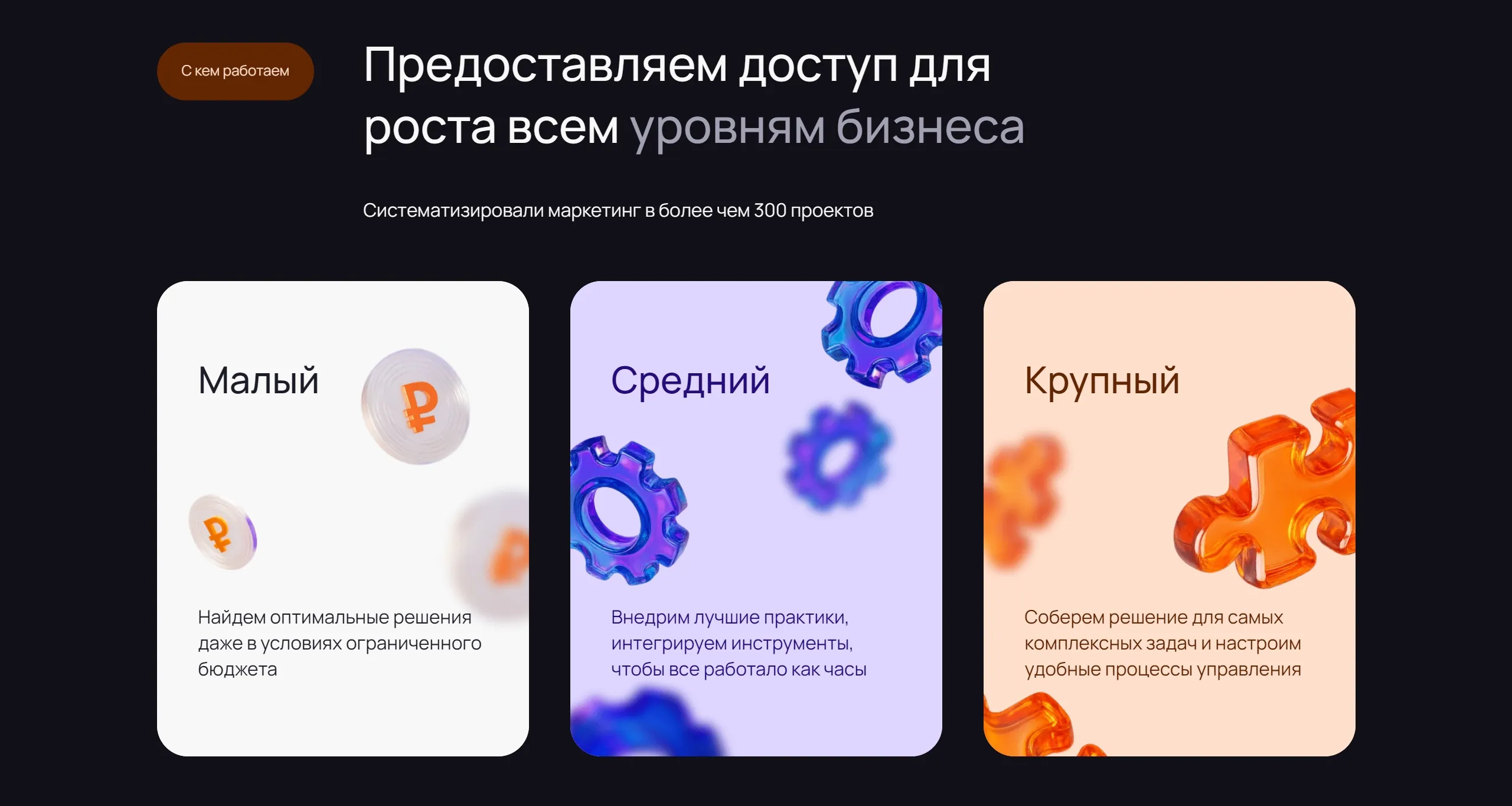 Компания специализируется на оказании системно-эффективных digital-услуг, направленных на увеличение бизнес-показателей заказчиков и является эталоном качества в сфере комплексного маркетинга.