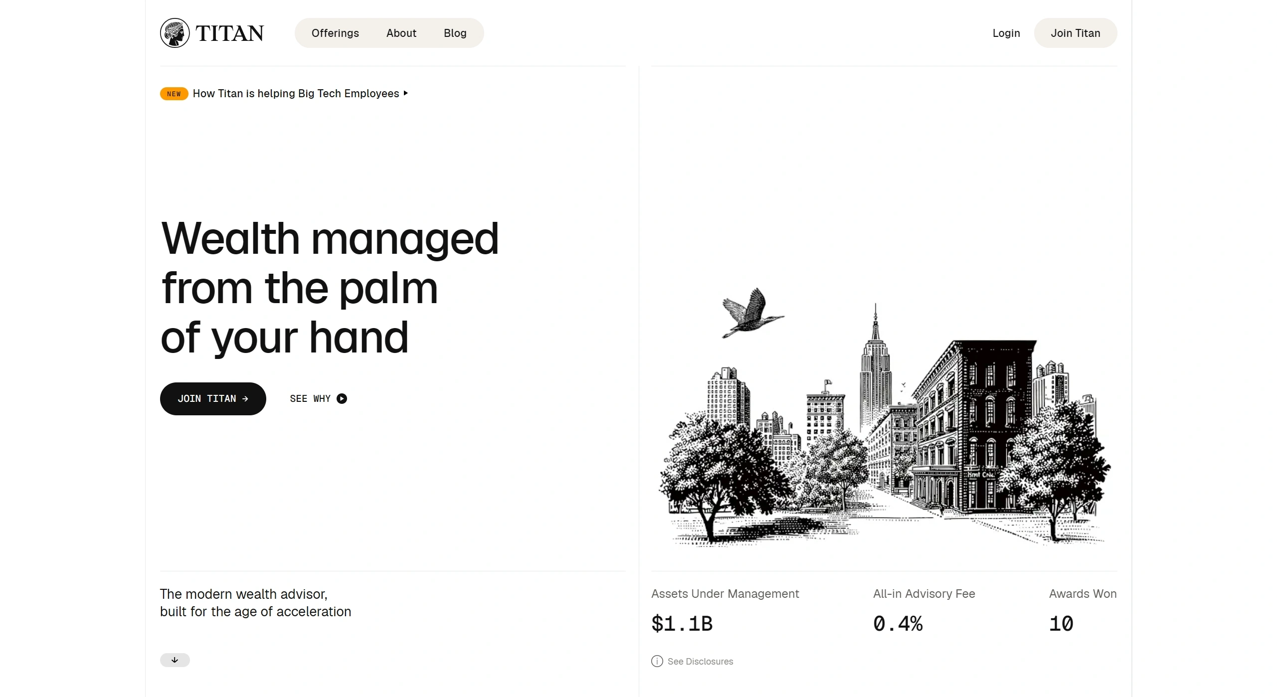 Titan offers professional wealth management designed specifically for tech professionals and couples, enabling clients to manage their investments conveniently from their mobile devices.