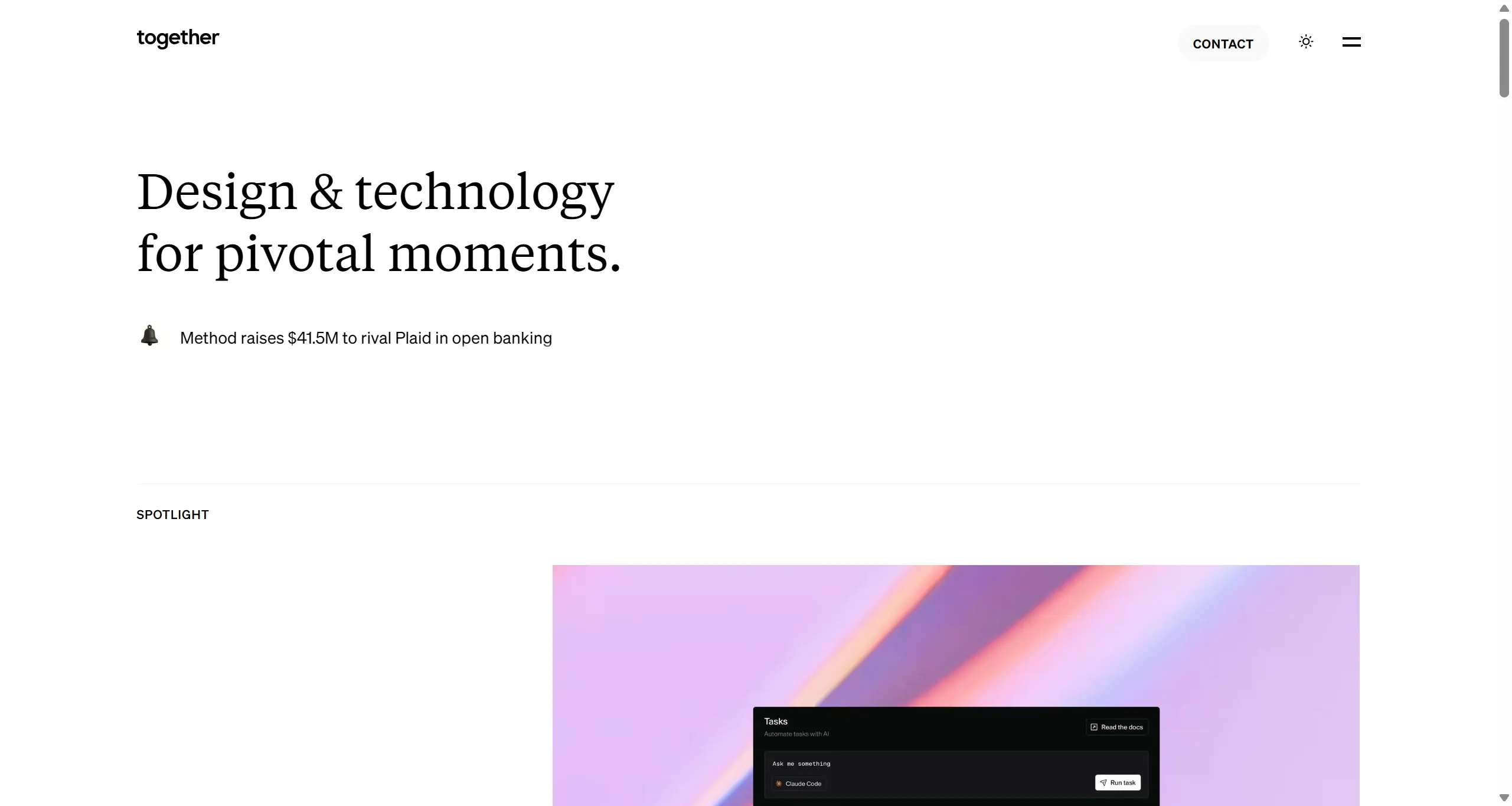Компания предоставляет стратегический дизайн и разработку для команд B2B в области технологий и искусственного интеллекта, помогая им трансформировать амбициозные идеи в определяющие бренды, продукты и веб-сайты.