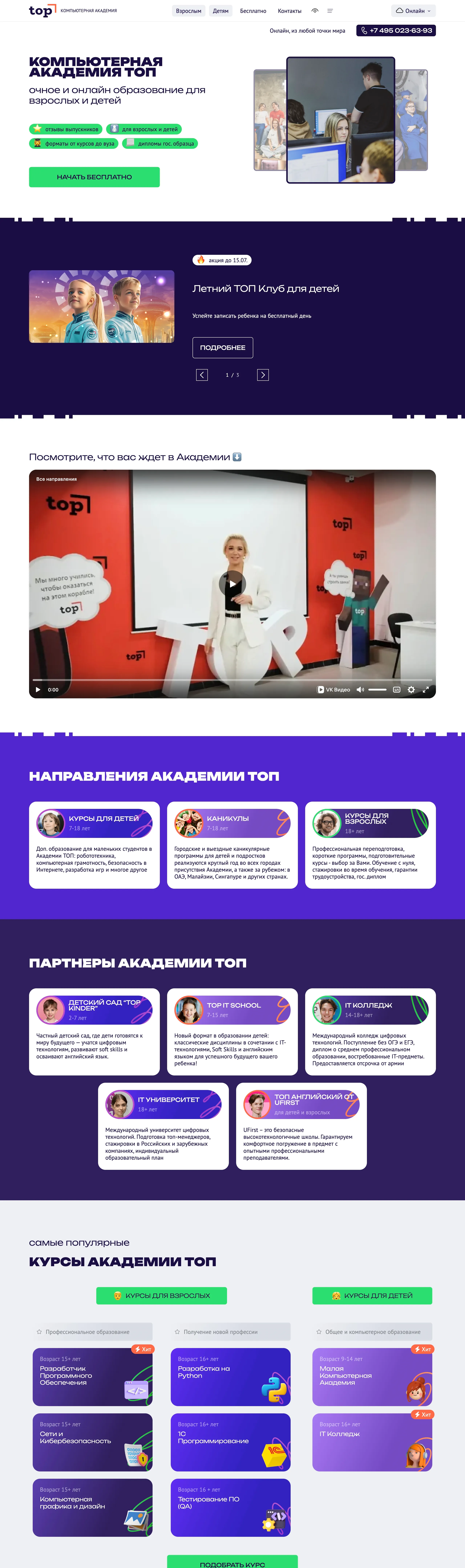 Секция «Партнеры» с сайта https://online.top-academy.ru/, тематика — Образование, цвета — Белый, Фиолетовый, стиль — Корпоративный, Карточный, типографика — Без засечек