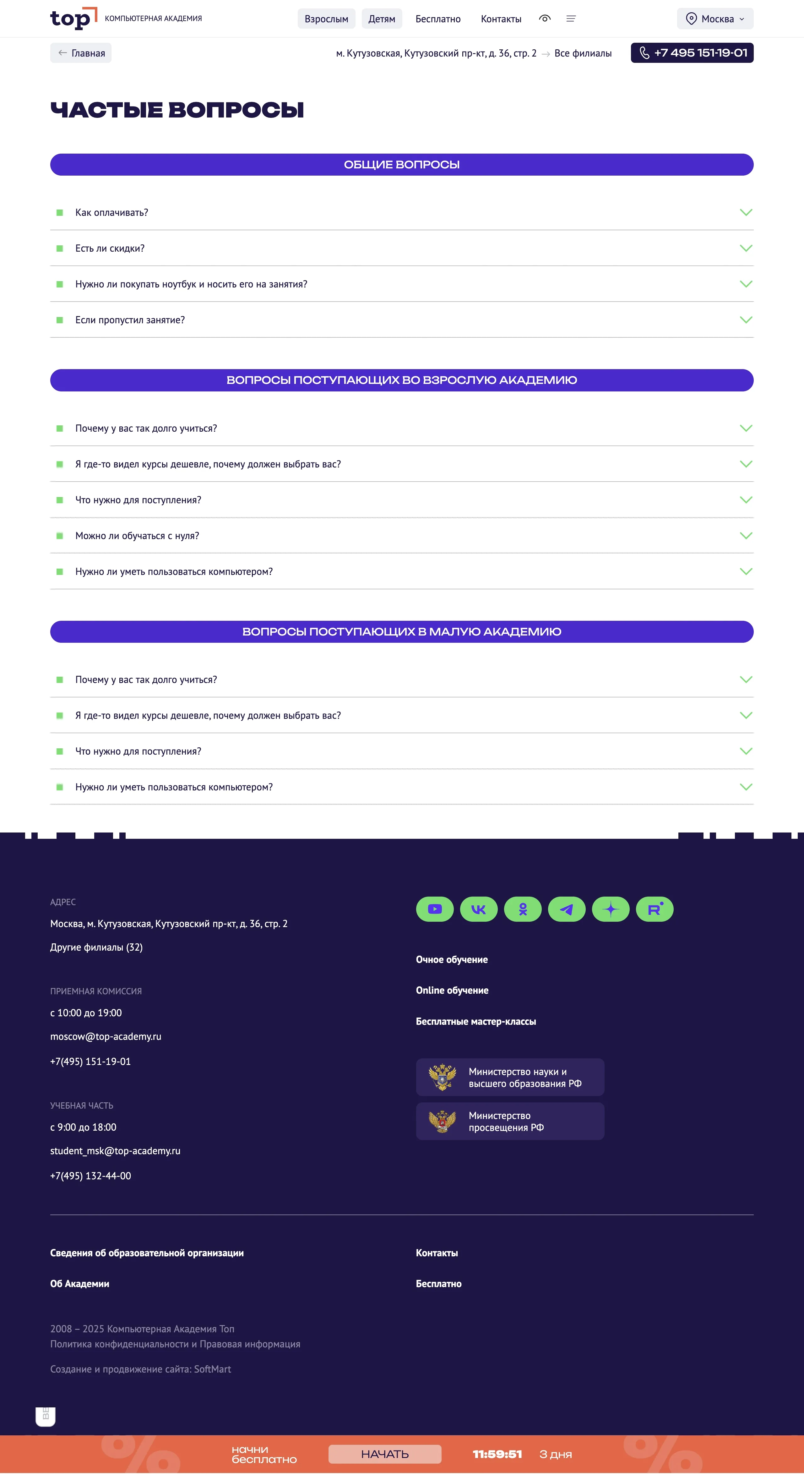 Секция «Партнеры» с сайта https://online.top-academy.ru/, тематика — Образование, цвета — Белый, Фиолетовый, стиль — Корпоративный, Карточный, типографика — Без засечек