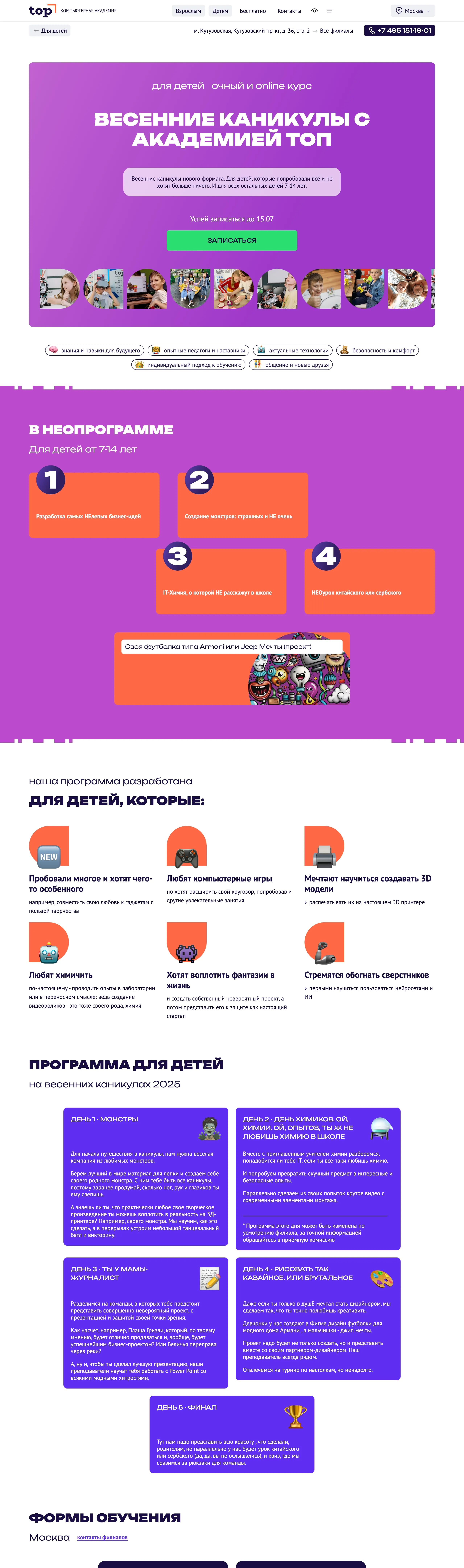 Страница о компании Академия TOP, тематика — Образование, цвета — Белый, Красный, стиль — Корпоративный, Карточный, типографика — Без засечек