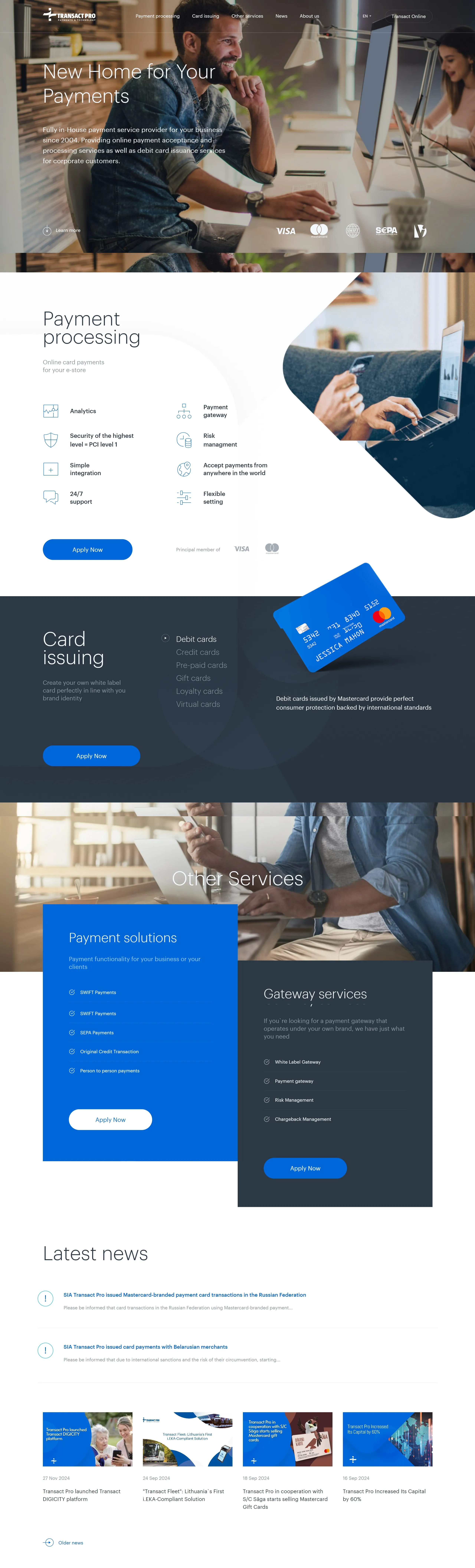 Компания из Латвии, лицензированный провайдер услуг эмиссии платежных карт, эквайринга и онлайн-оплаты, предлагающий индивидуально подобранные сервисы для бизнеса.