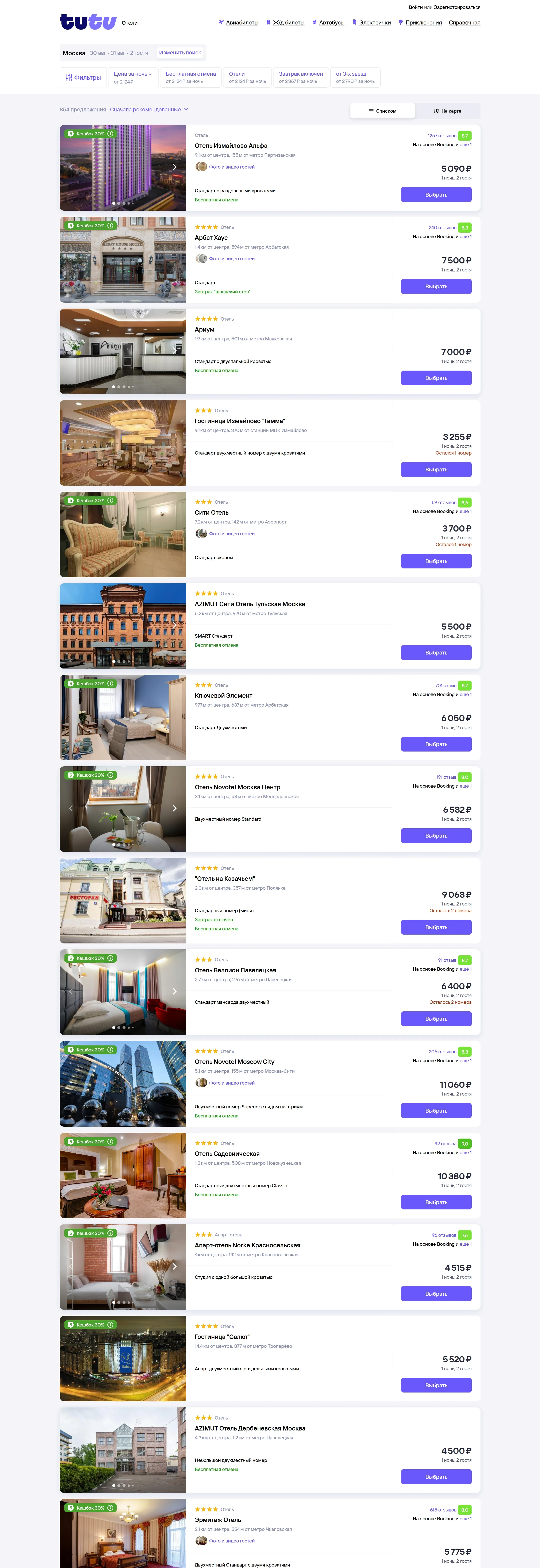 Платформа для покупки билетов на железнодорожные и автобусные перевозки, а также бронирования авиабилетов и отелей, предлагающая справочную информацию по вокзалам, аэропортам и курортам.