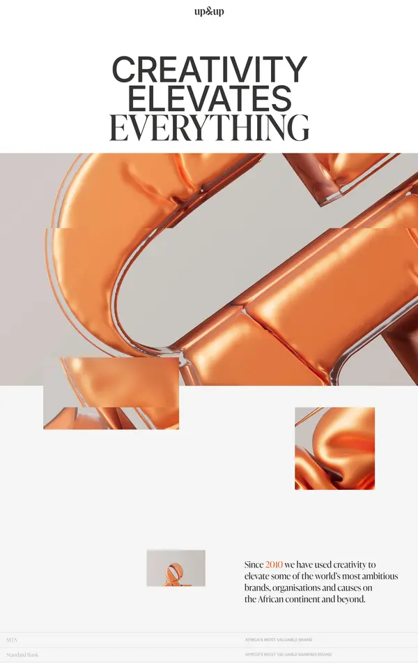100% южноафриканская креативная группа компаний, которая стимулирует рост через оптимизм, открытость, возможности и креативность. С 2010 года они используют креативность для поддержки амбициозных брендов и организаций на африканском континенте и за его пределами.