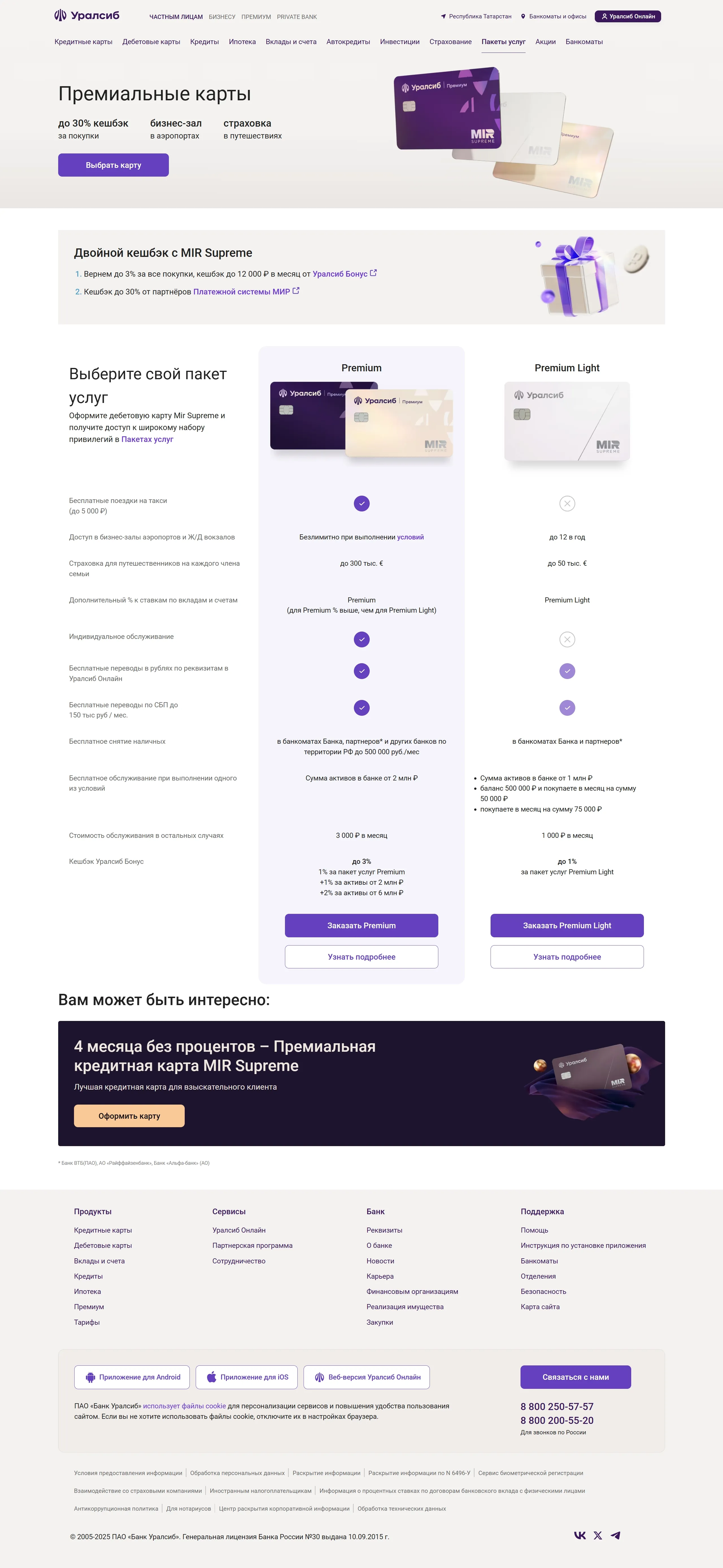 Услуги Уралсиб, тематика — Финансы, цвета — Белый, стиль — Корпоративный, типографика — Без засечек