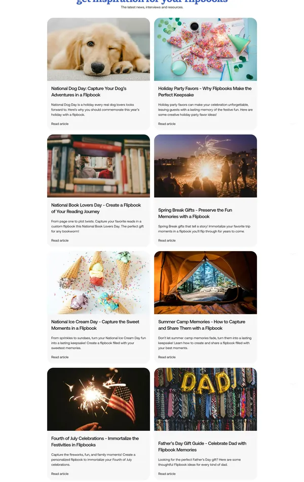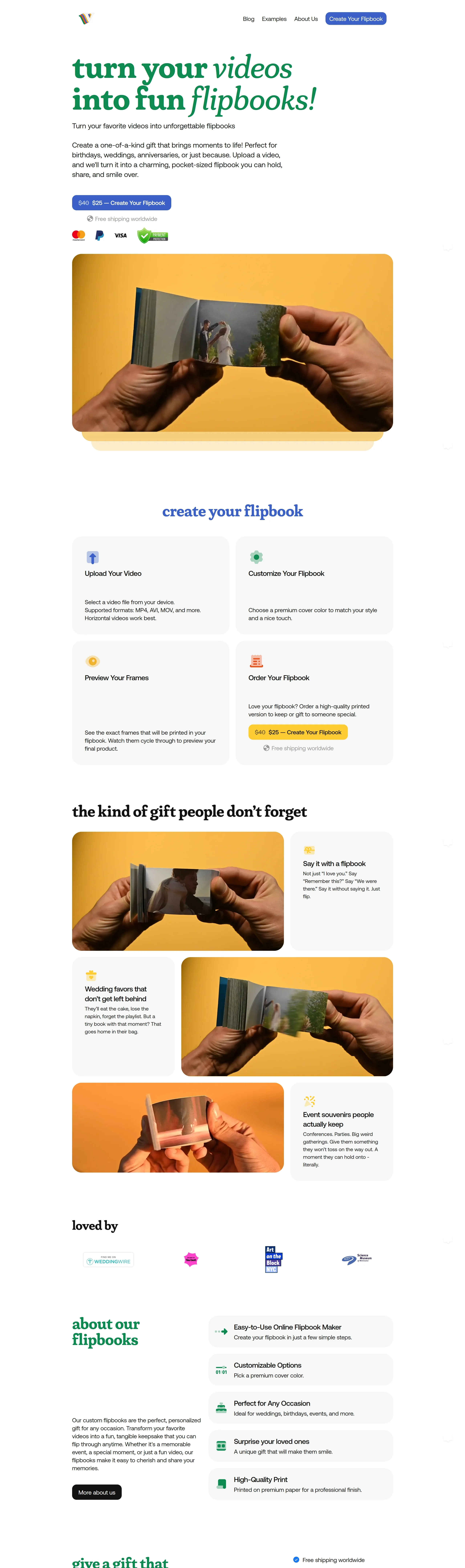 Платформа, которая позволяет создавать персонализированные флипбуки из ваших любимых видео всего за несколько кликов, идеально подходящие для подарков на праздники и особые случаи.