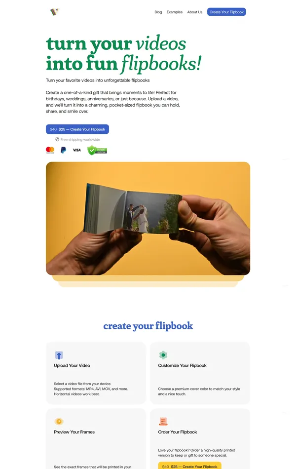 Компания предлагает создание персонализированных флипбуков из любимых видео, превращая их в уникальные и запоминающиеся подарки для различных случаев, таких как дни рождения и свадьбы.