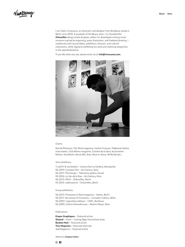 A French illustrator and graphic designer based in Berlin, known for combining expressive ink drawing with graphic precision to explore the interplay between raw instinct and narrative form.