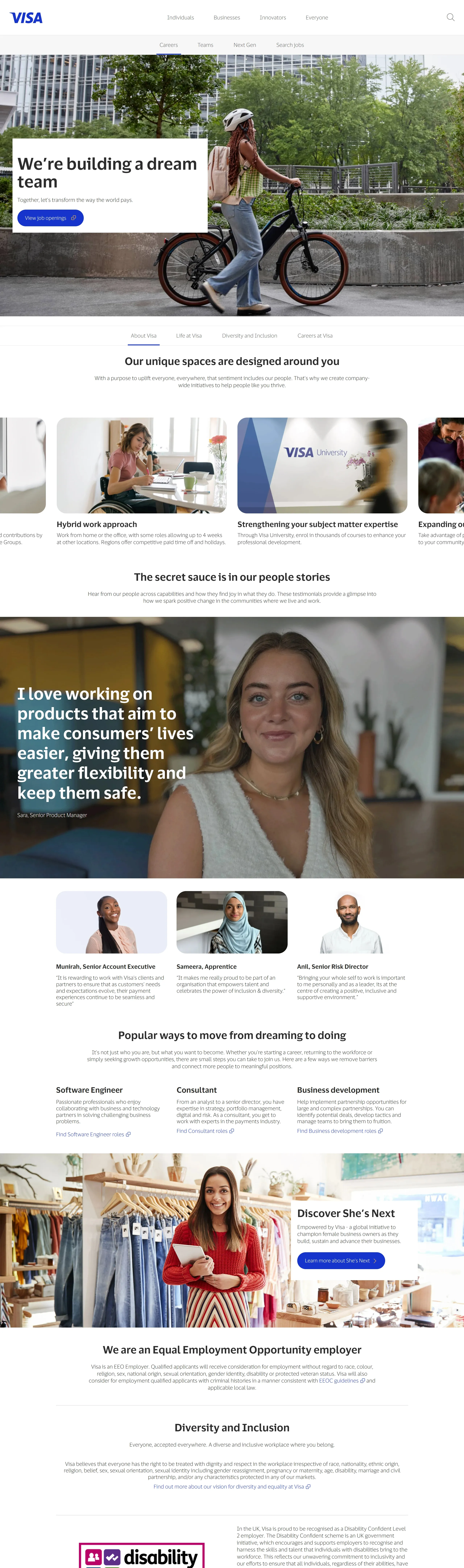 Страница карьеры visa, тематика — Финансы, цвета — Белый, Серый, стиль — Корпоративный, типографика — Без засечек