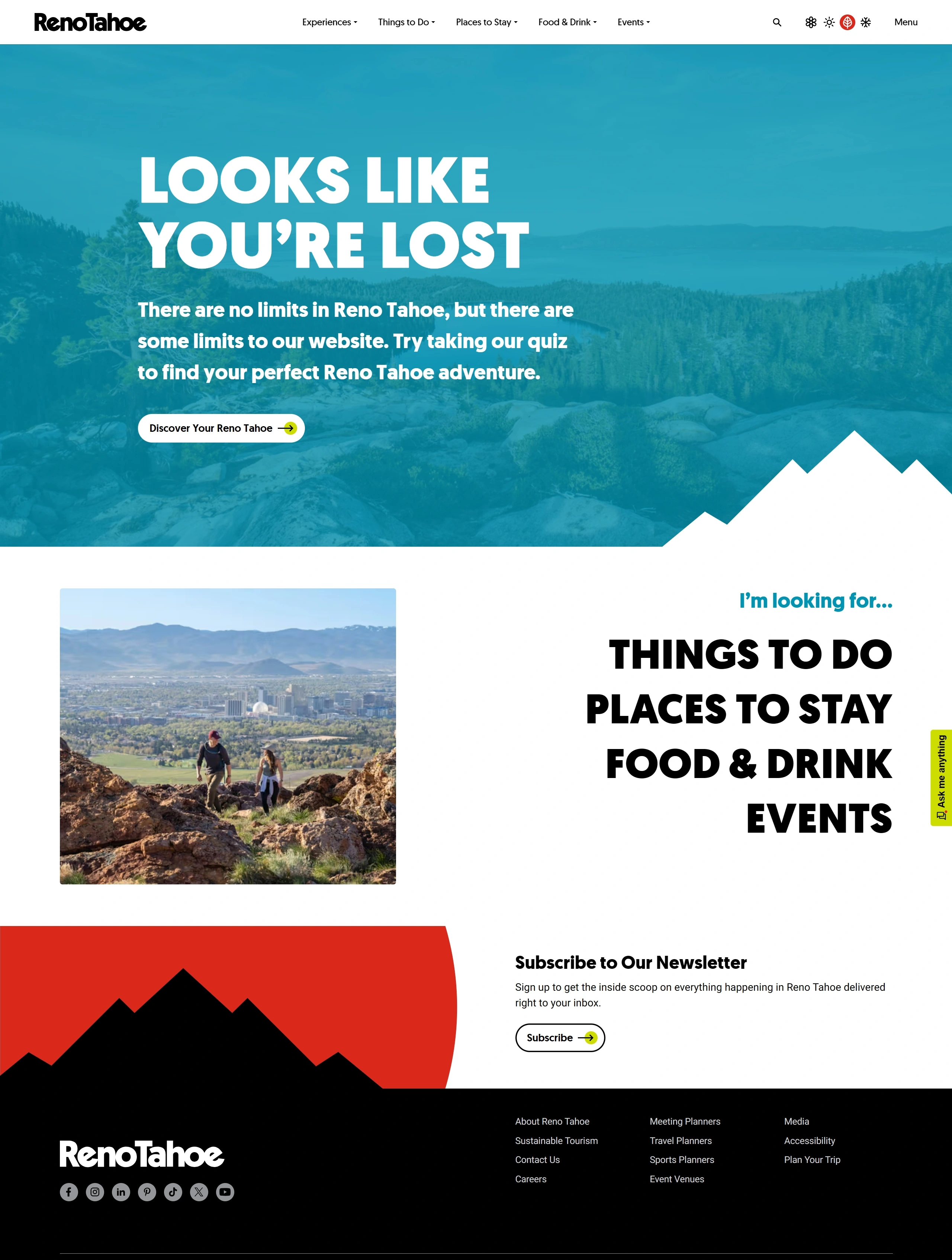 Платформа для планирования поездок в Рено и озеро Тахо, предлагающая информацию о гостиницах, ресторанах, мероприятиях и активных видах отдыха.