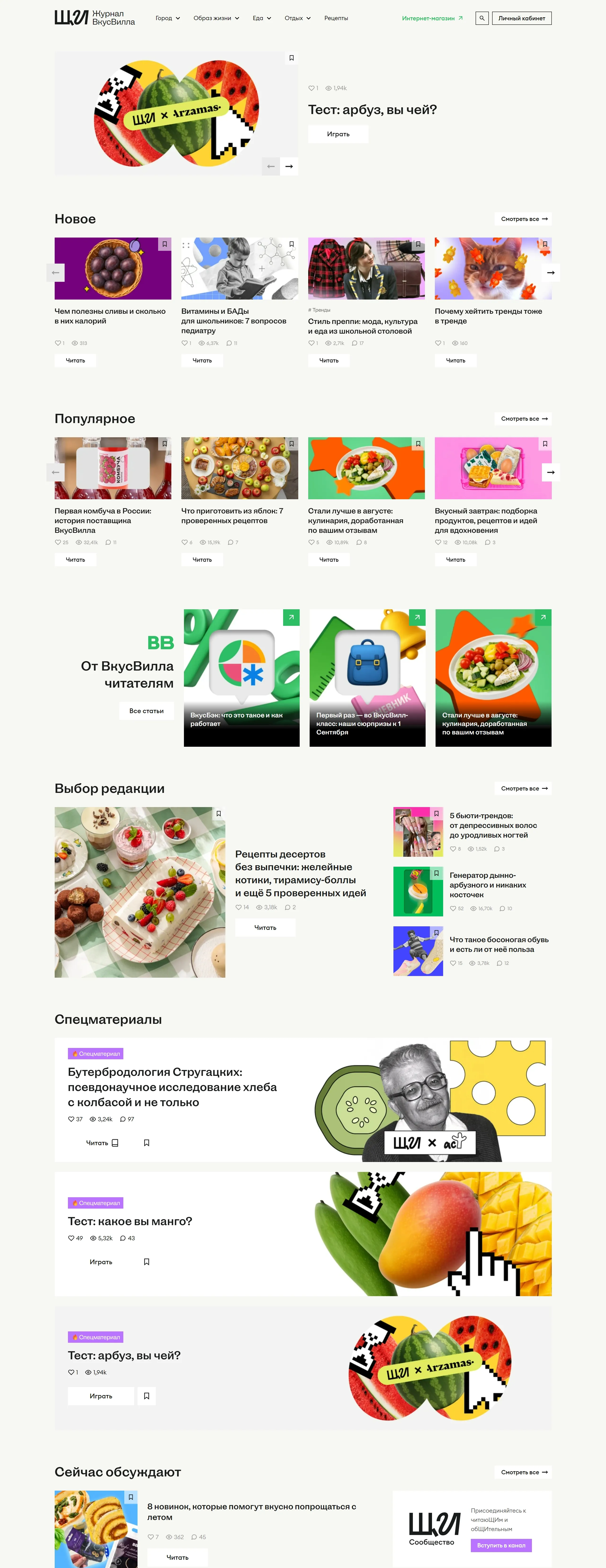 Блог ВкусВилл, тематика — Еда и напитки, цвета — Белый, Серый, стиль — Корпоративный, типографика — Без засечек