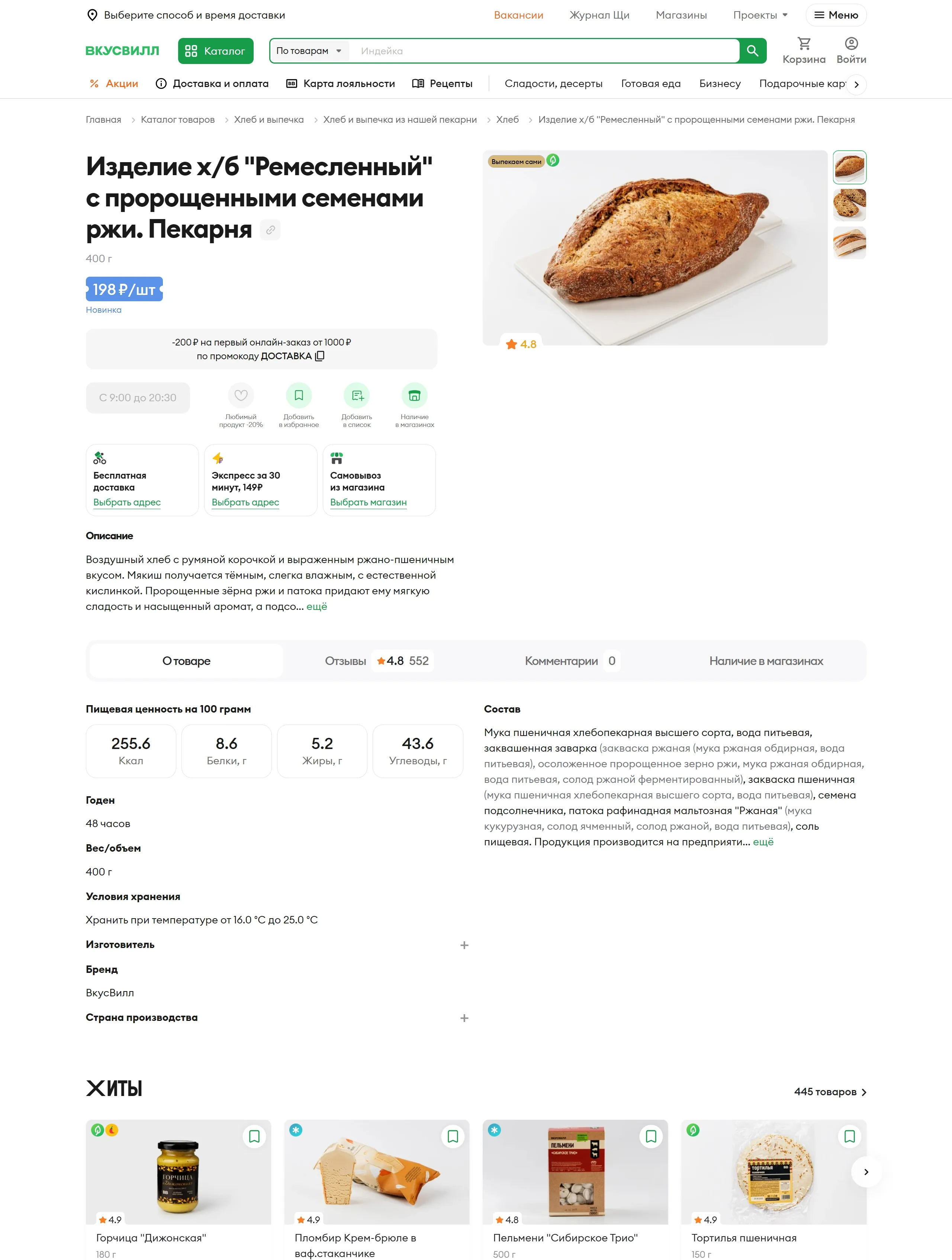 Это интернет-магазин, предлагающий широкий ассортимент продуктов для здорового питания с доставкой на дом по всей России, включая Москву. Клиенты могут оформить онлайн-заявку на самовывоз и получить заказ в течение 30 минут.