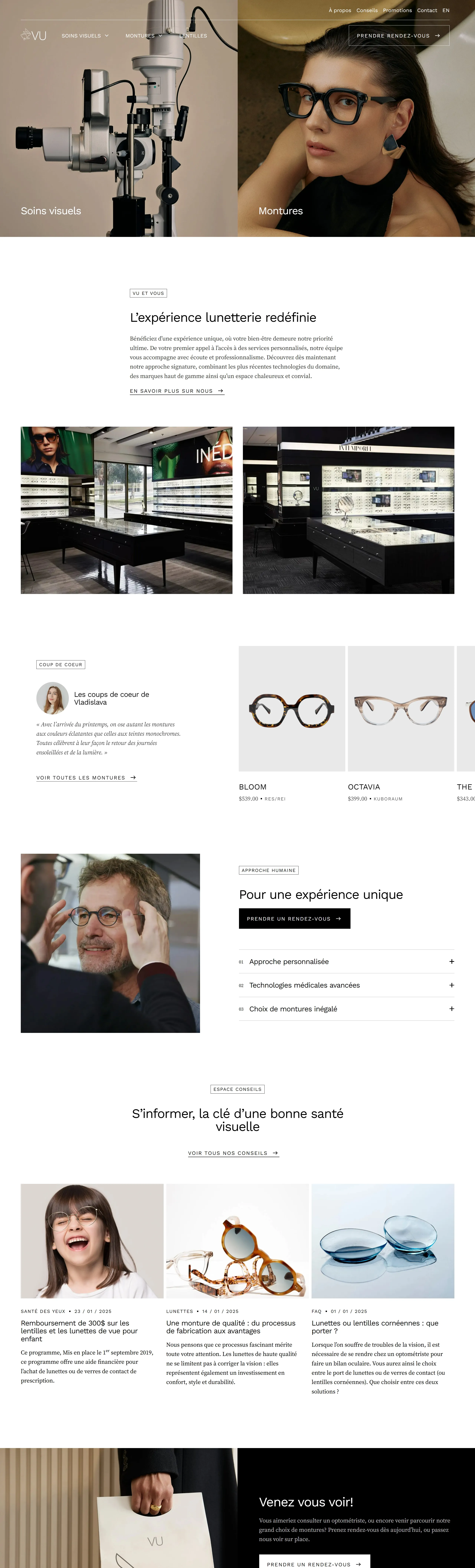 VU - это семейная компания, занимающаяся оптометрией и продажей очков в Монреале с 1985 года, предлагающая широкий выбор брендов и моделей.