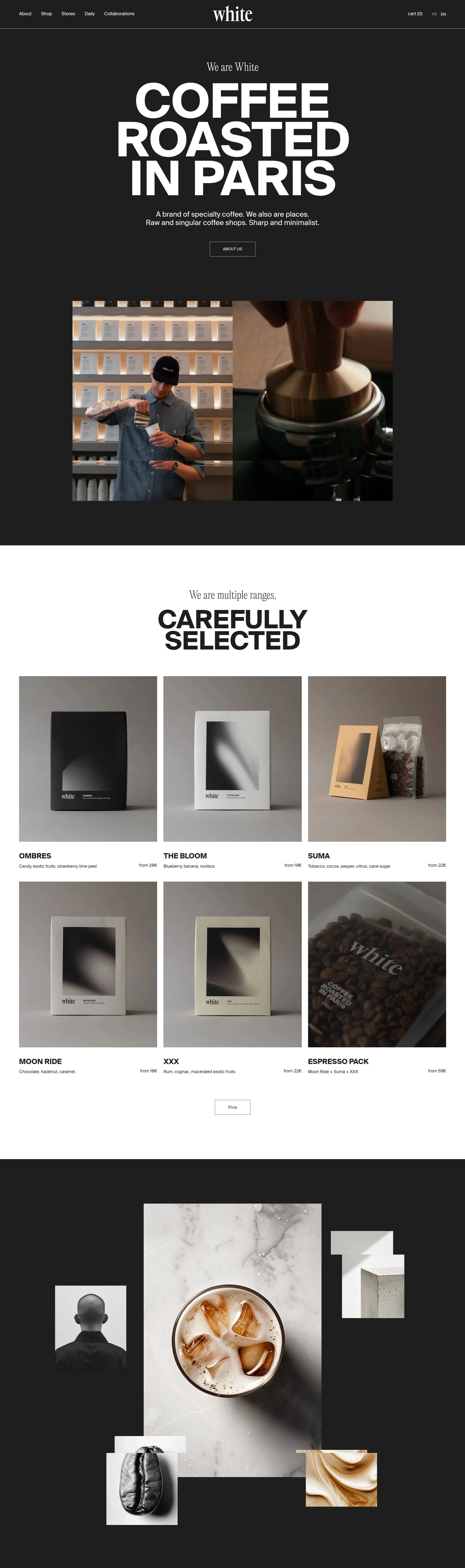 Специализированный бренд кофе, обжаренного в Париже, с уникальными кафе в минималистическом стиле, предлагающий тщательно отобранные сорта кофе.