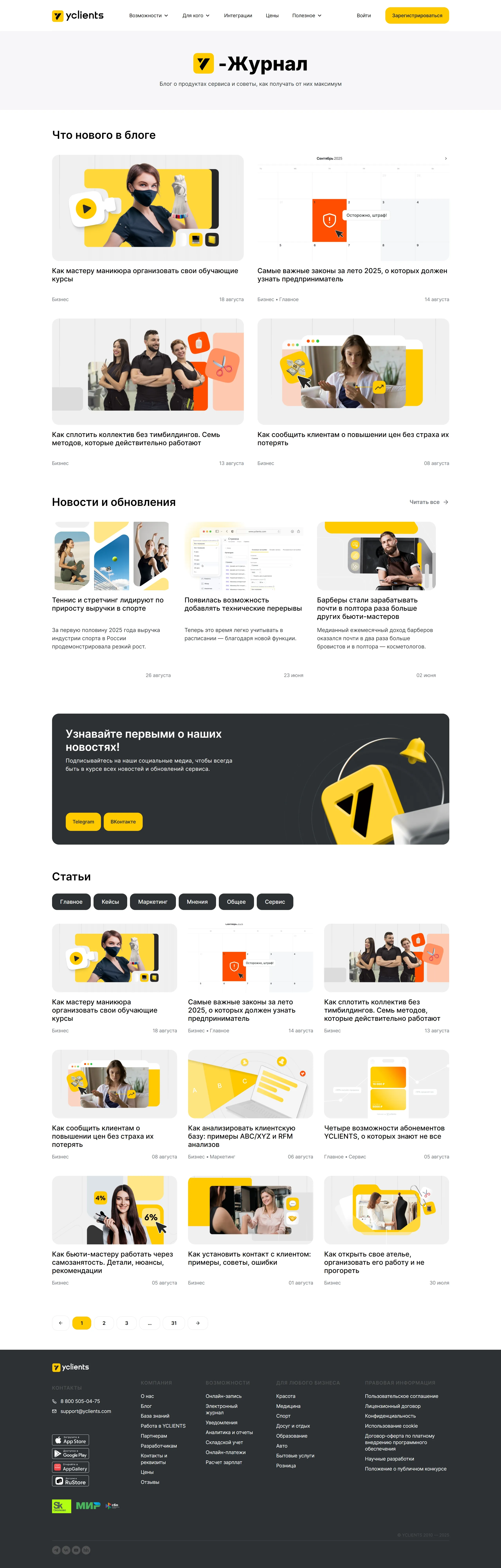 Блог yclients, тематика — SaaS, цвета — Белый, Черный, стиль — Корпоративный, типографика — Без засечек