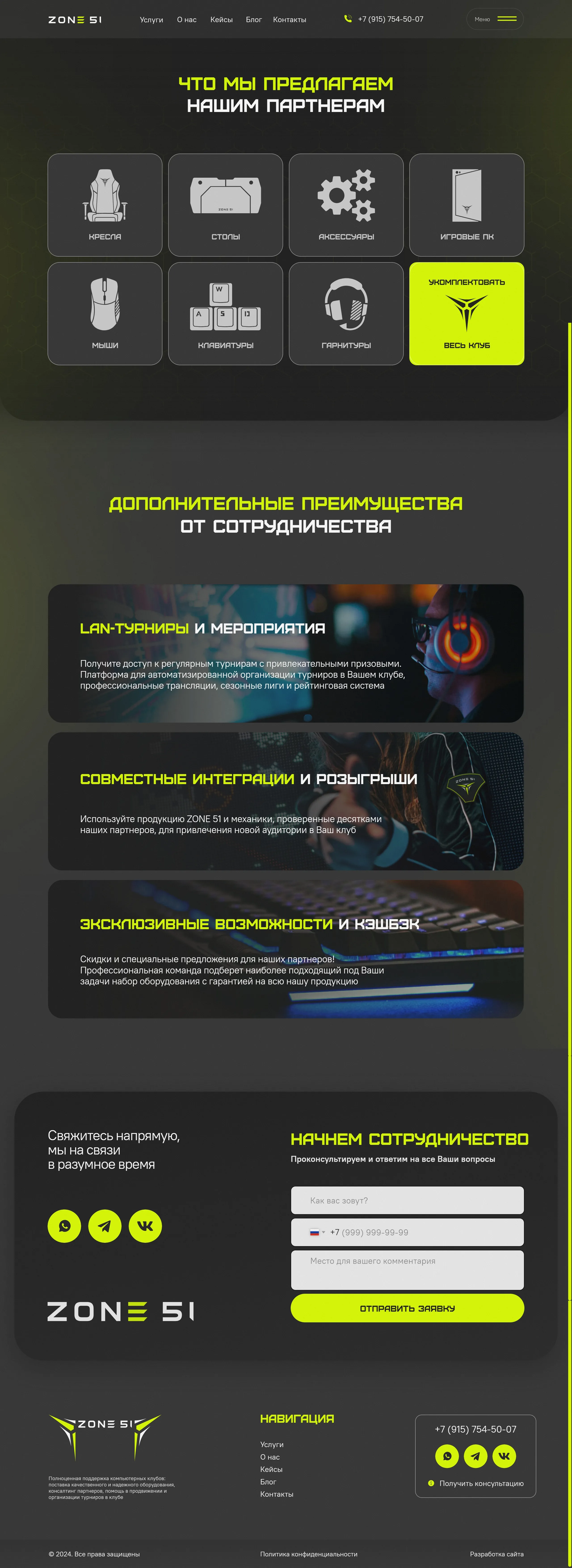 Компания предоставляет оборудование и мебель для компьютерных клубов, а также предлагает преимущества партнёрства и организацию LAN-турниров.